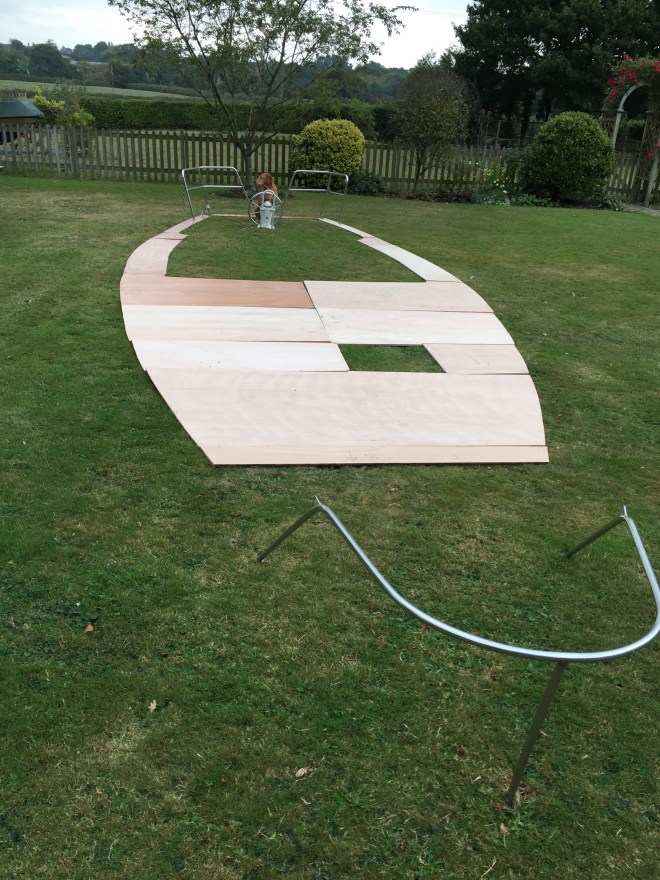Well this is what Anne Marie looks like with her new decking – Er you have to use your imagination. Rusty is trying to decide whether he wants to be a sea dog/skipper.