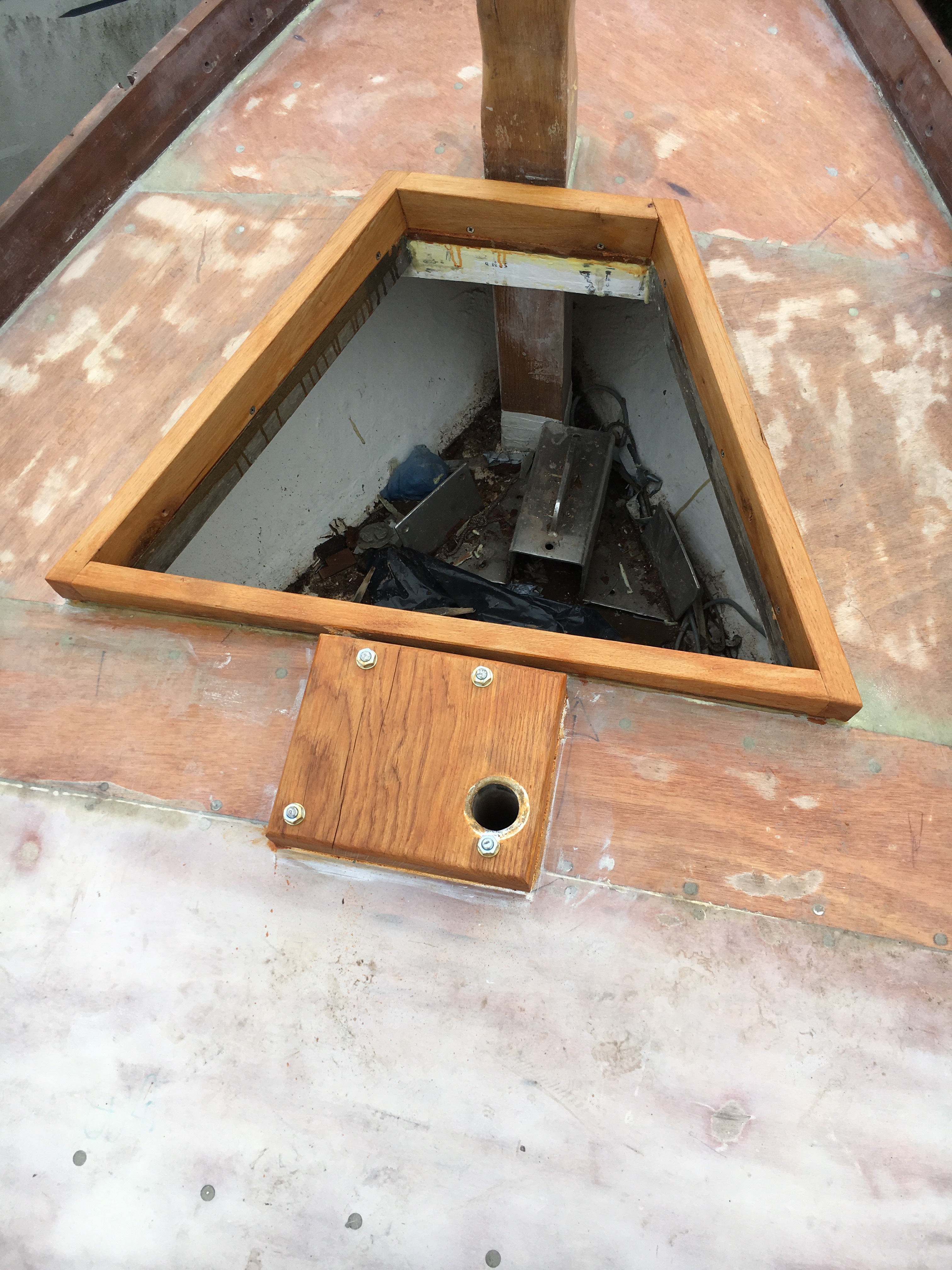 Last minute touch ups and front deck hatch work. Everything is sanded and vacuumed. 9.00 am kick off.