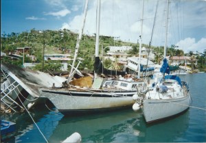 Seeing as it is hurricane season in the Caribbean I have found some photos of Anne Marie when she survived Hurricane Ivan on 10th September 2004 anchored in Granada.