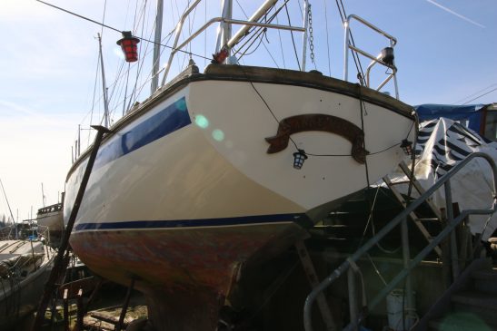 Today is a red letter day for Anne Marie. Carrie and I installed the PUSHPIT at the stern in the drizzle of Rye. This is at the other end of the boat to the PULPIT which is at the bow and will be mounted on the bowsprit when we get round to it in the next couple of weeks.