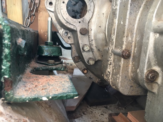 Well I have made a hoist frame of timber to and this has my two tonne engine hoist attached to it. I have slung the hoist from the top and attached it to the engine with fabric slings. I can now raise and lower the engine from the engine bed to the cabin floor without too much hassle. I do this a lot.