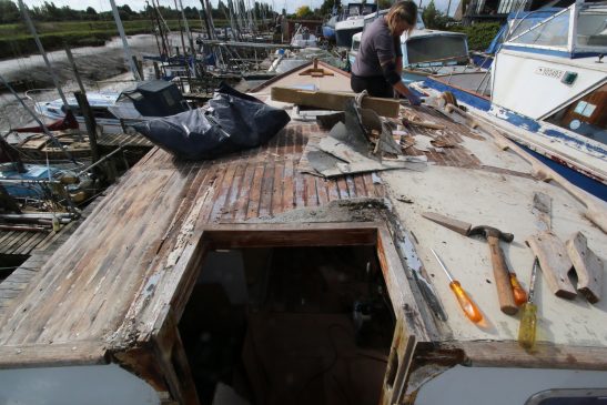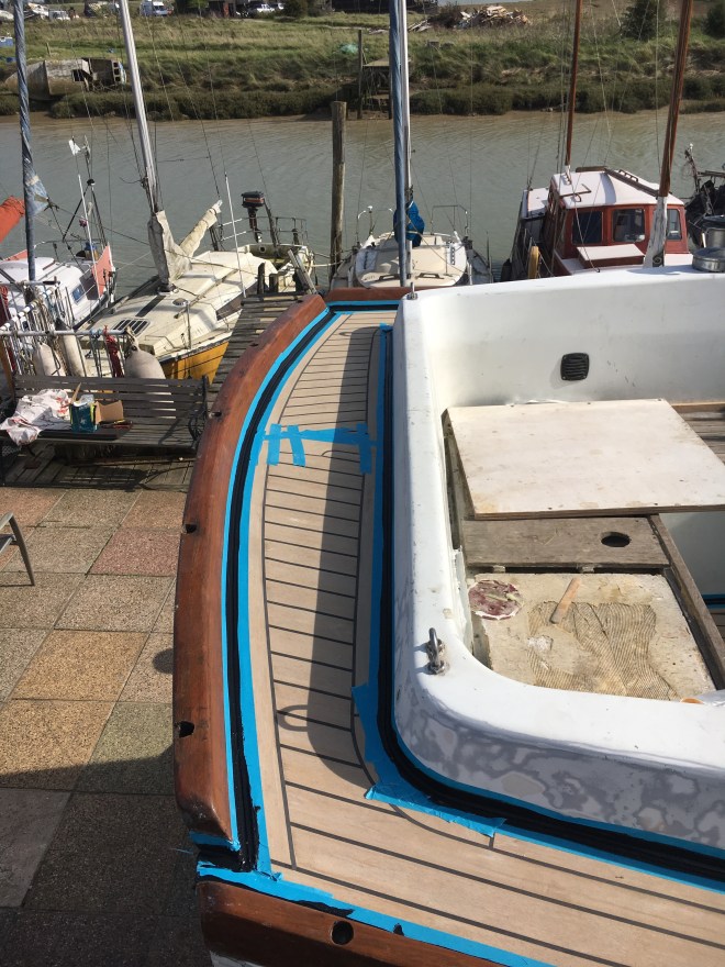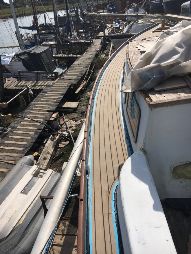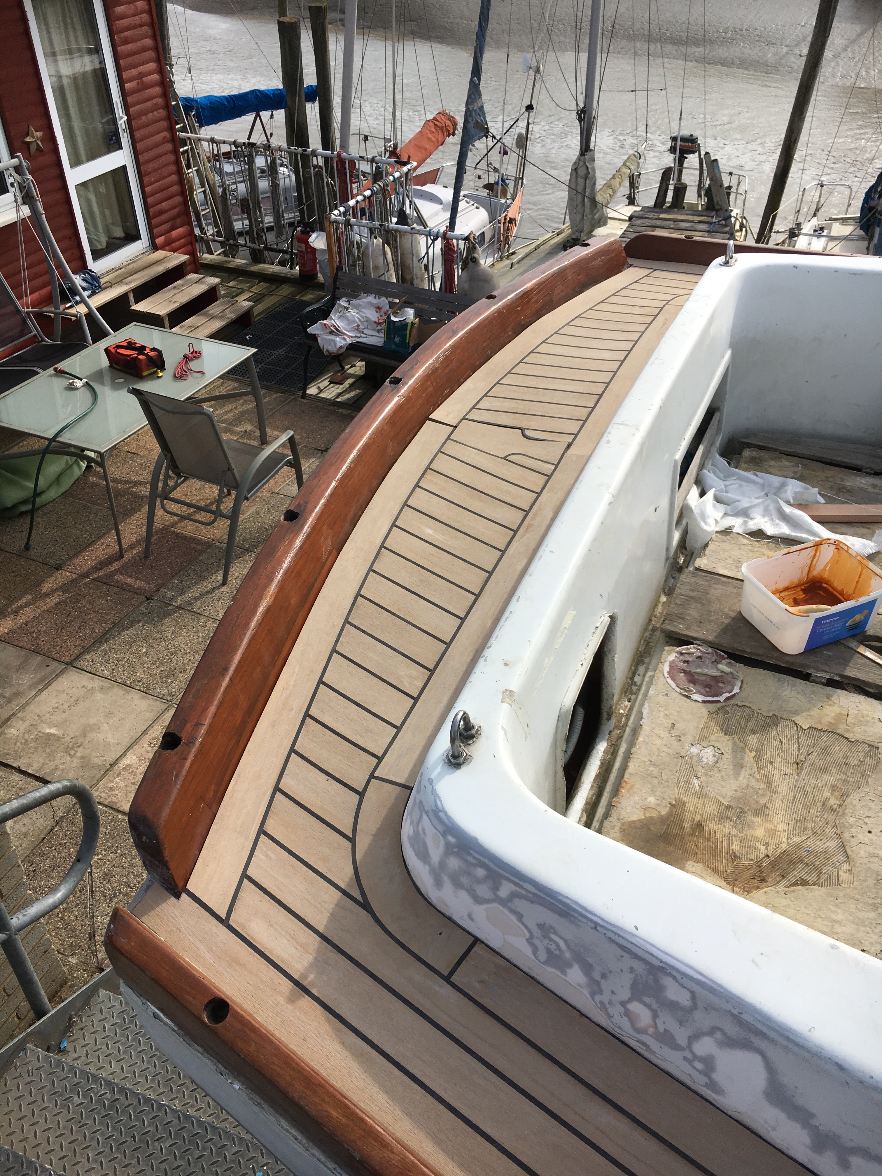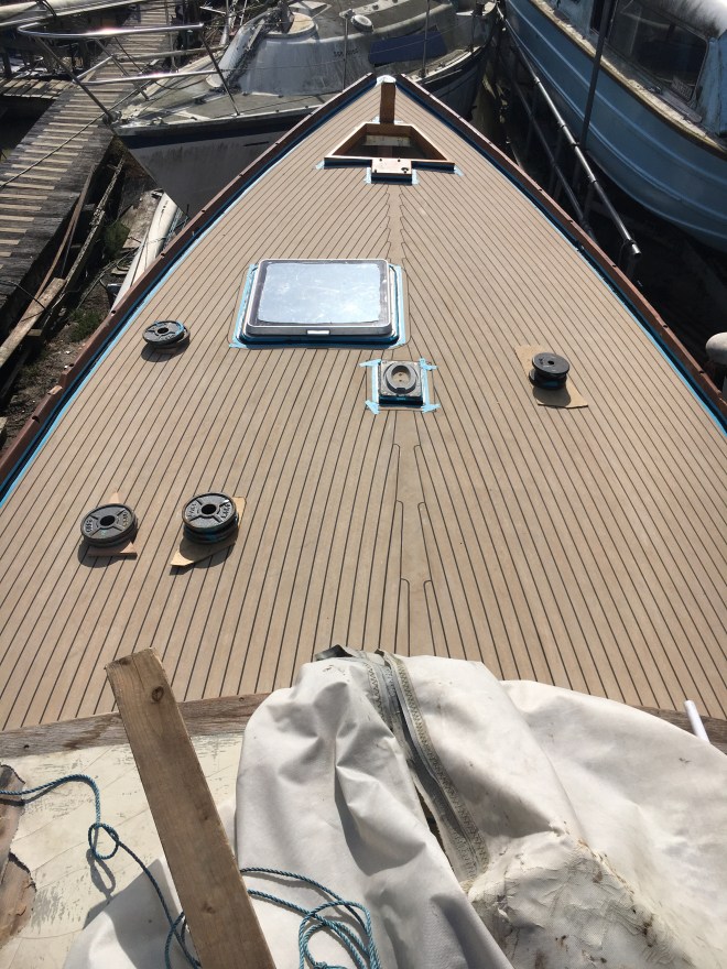 Having finished the deck ‘proper’ of Anne Marie we have now turned our attention to the deck above the main cabin.