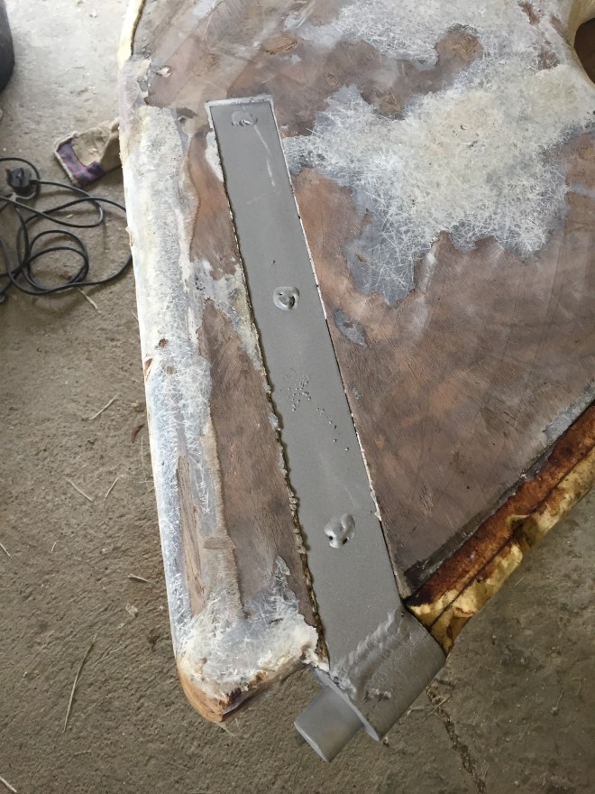 Phase 2 of rescuing the rudder begins today. I have had the straps sandblasted and they are beautifully clean and ready for resin. I have sanded down the timber so that it is smooth and clean and ready to accept resin. Some parts of the previous